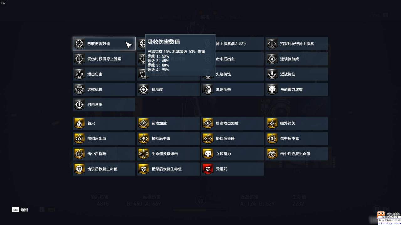 格挡后出血:格挡之后有20%几率让攻击者出血。 注:这个格挡是只要敌人武器砸在你盾牌上就可以,不一定要盾反。