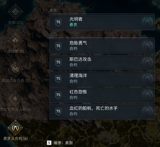 通过打开角色菜单的任务列表,可了解所接受任务的进度及简要介绍。任务类别主要分为奥德赛、游戏世界及人物、悬赏及合约三大类。